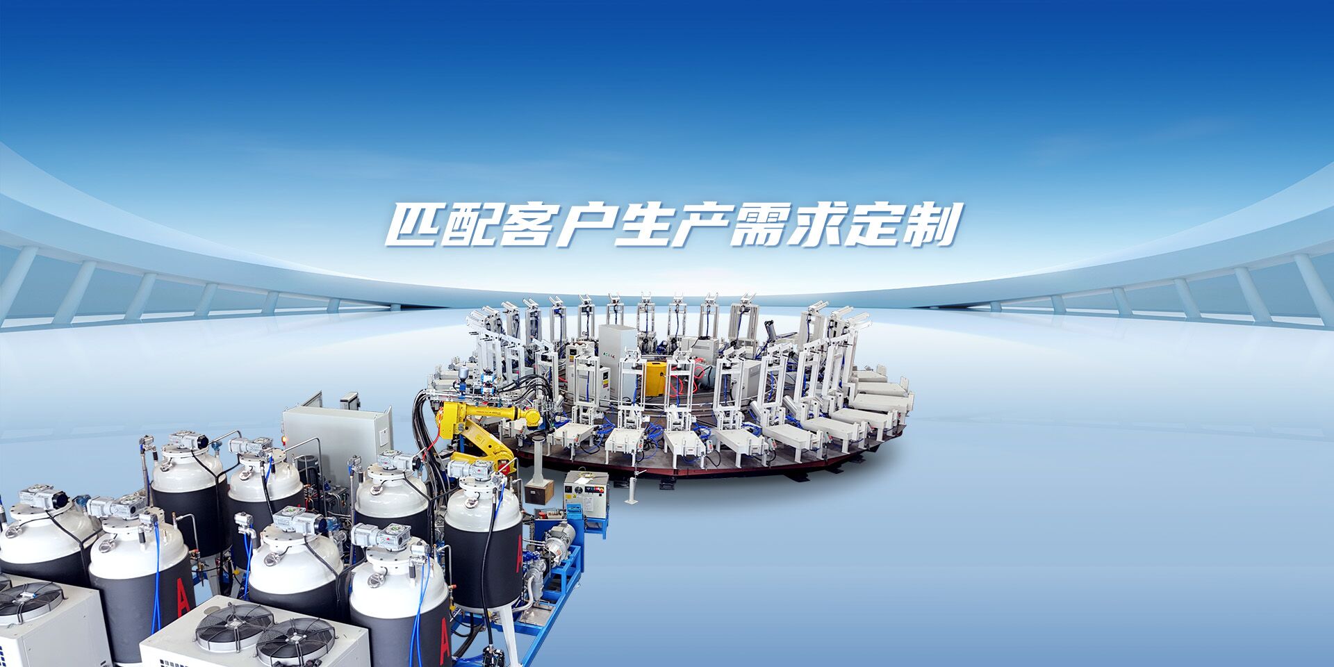 領新機械公司成立近二十年,是一家擁有十幾項專利,集聚氨酯澆注設備、相關自動生產(chǎn)線、配套設施及生產(chǎn)工藝技術支持為一體的綜合性服務商,即“聚氨酯整體方案服務商”。