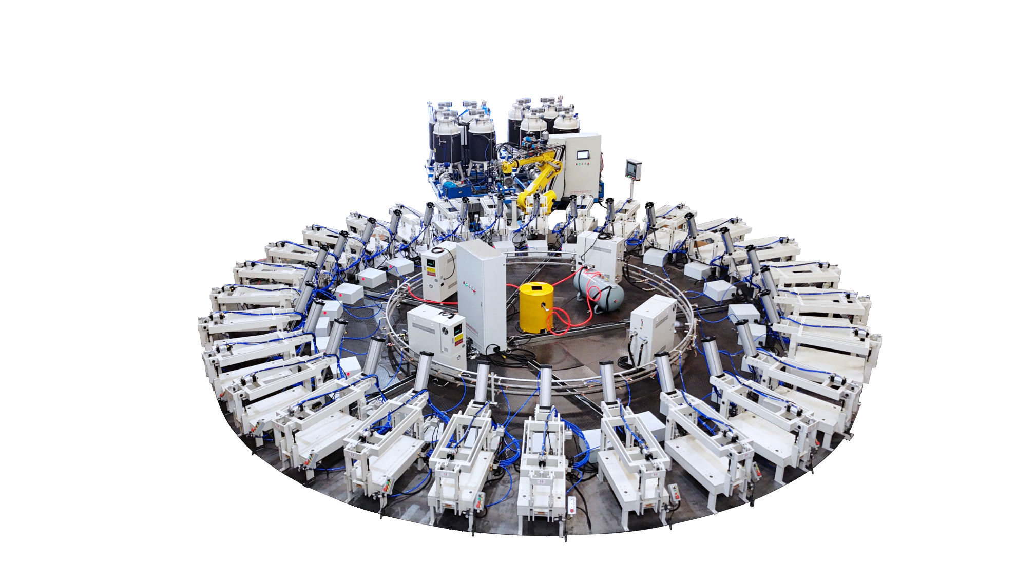 隨著社會發(fā)展,新能源汽車行業(yè)的崛起。目前汽車行業(yè)針對產(chǎn)品需求量大,為了滿足該行業(yè)的產(chǎn)品需求我們推出了高壓發(fā)泡機、低壓發(fā)泡機以及配套的自動化生產(chǎn)線,針對不同的產(chǎn)品需求,我們提供不同的解決方案。以下是部分自動化生產(chǎn)線解決方案。1. 全自動圓盤生產(chǎn)線是領新自研的全自…